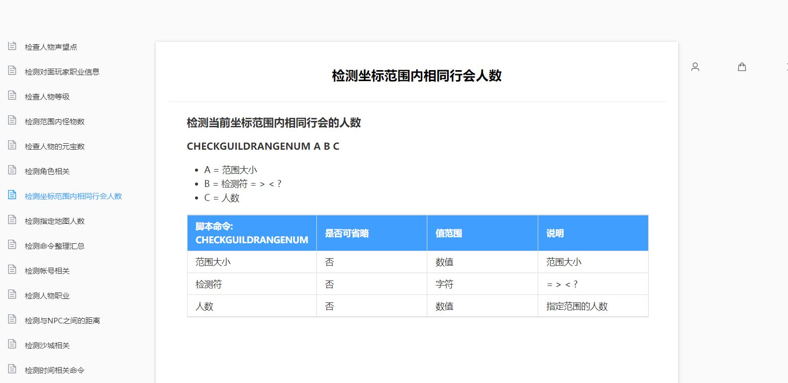 使用到的命令有:CHECKGUILDRANGENUM A B C  A = 范围大小